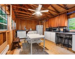 Nestled on nearly an acre of land along a quiet private laneway, this cozy seasonal cabin offers 150 feet of sparkling Lake Ontario shoreline. Surrounded by mature trees, the property provides both shade and privacy perfect for tranquil getaways. Used seasonally for over 40 years, the cabin features a comfortable living area, a functional kitchen space, two bedrooms, and a den ideal for hosting guests or enjoying peaceful moments indoors. Whether you're looking for a serene retreat or a place to create summer memories, this waterfront gem is a rare opportunity. Located just east of Waupoos in beautiful Prince Edward County close to Waupoos Winery and County Cider Company. Easy access to the water to enjoy swimming in the crystal clear lake. Also a nice cleared area for evening lakefront campfire. Perfect spot to entertain. (id:62300)