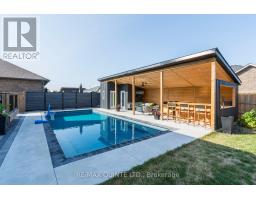 PRICE IMPROVEMENT! Welcome to your own private oasis. This modern, custom-built Duvanco Homes 2-storey offers every luxury you've been looking for-inside and out. Step into a backyard built for envy: an in-ground heated saltwater pool, covered outdoor bar, and spacious entertaining area. Fully fenced and set on a desirable corner lot, the outdoor space provides exceptional privacy and resort-style living. Inside, enjoy three finished levels of beautifully designed living space. The open-concept main floor features a stunning modern kitchen with a large sit-at island, quartz countertops, custom cabinetry, light valance, and under-cabinet lighting. A private front office with French doors is ideal for working from home or finding a quiet retreat. The upper level offers four generous bedrooms, including a luxurious primary suite with a 5-piece ensuite featuring a tiled shower with custom glass door, standalone soaker tub, double vanity, and a spacious walk-in closet-your perfect sanctuary. The fully finished basement extends the living space with a dedicated exercise room, 3-piece bathroom, recreation room, and a fifth bedroom, perfect for guests or extended family. Located in highly sought-after Settlers Ridge, this family-friendly neighborhood offers abundant green space, playgrounds, soccer fields, and an asphalt biking/running trail with ample evening lighting. All city amenities are nearby, with quick access to Highway 401.To recreate this home-especially with the outdoor features-would far exceed the asking price. Remaining Tarion warranty to convey. Sellers are highly motivated. (id:62300)