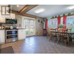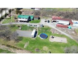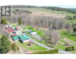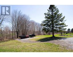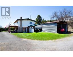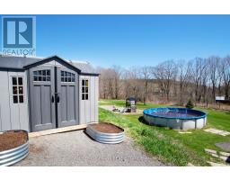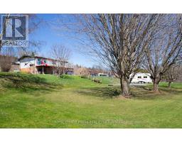 Welcome to the country yet close to the town of Colborne (Big Apple) just north off of Hwy. #2 and west of Colborne lies this picturesque 3.21 acre country property with a stream meandering through it. The stone and aluminum raised bungalow offers three bedrooms on the second level with a 4 piece bath and large living room with stone fireplace. Also a walkout from the living room to a balcony which is the length of the home with a southern view. The main, ground floor level features the eat-in kitchen with the pellet stove, walkout to the side yard, gym and storage room, laundry room, 2 pc. bath, storage and the family room with another stone fireplace with a gas insert. There is also a walkout to the patio from the living room. Some other features include a propane furnace, central air, indoor gym room, steel roof and mostly updated windows. Outside there's a large 25' x 85' hobby shop with a steel roof and concrete floor. It opens up to an attached transport trailer with shelves for more storage. Two other "sea cans" and the transport trailer could stay or go. There is also an above ground pool, a basketball net, play area, playhouse and large sand area. The detached two car garage is all steel sides and roof. Great views to the south and east. (id:62300)