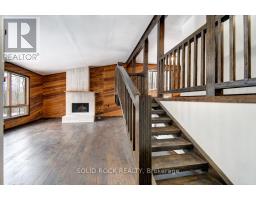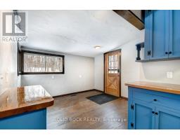 Discover this one-of-a-kind 3-level backsplit that blends craftsmanship, warmth, and character throughout. Featuring 2 bedrooms, 2 bathrooms, and a finished basement with in-law potential and its own private entrance, this home offers flexibility for extended family or guests. Step through the double-door entry into a welcoming foyer complete with a large closet and custom bench. The home showcases handcrafted woodwork, engineered floors, and oiled cedar wood walls, creating a cozy, timeless atmosphere. The main-level primary bedroom provides convenience, while the floor-to-ceiling fireplace and unique wood staircase add to the home's rustic charm. The mezzanine-level kitchen and dining area feature epoxied oak countertops, new custom cabinetry, and thoughtful design touches that flow seamlessly into the bathroom. Set on just under 2 acres, the property offers a peaceful natural setting with limestone and basalt outcroppings, walking paths, and mixed deciduous trees. Located in Marmora, you'll enjoy proximity to Crowe Lake, the boat launch, and a vibrant, growing downtown. A truly special property where craftsmanship meets nature - ideal for those seeking privacy, character, and small-town charm. (id:62300)