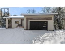 Welcome to this bright, spacious and contemporary bungalow, perfectly set on a stunning wooded 1.93 acre lot in one of the areas most sought after neighborhood's. This brand-new build combines modern design with high-quality finishes and the peaceful charm of a private, treed setting. The home features an open-concept floor plan with soaring vaulted ceilings and beautiful hardwood flooring throughout the main level. Large windows fill the space with natural light, while the spacious living and dining areas flow seamlessly to the kitchen and out to the large covered rear deck ideal for relaxing and entertaining while surrounded by nature. Offering 2 bedrooms and 2 bathrooms (there is also a 3rd bath plumbed in the basement), including a luxurious ensuite, this home is thoughtfully designed for comfort and style. The full walkout basement provides excellent potential for additional living space, hobbies, or storage. You will be wowed by the beautiful bright and spacious attached two-car garage. Opportunity to enjoy contemporary living in a private, wooded setting this home is move-in ready and has a full Tarion Warranty. If Modern Country Hideaway is your vibe - it is here - waiting for you!! (id:62300)