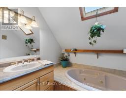 Welcome to this charming 3-bedroom, 3-bathroom two-storey home, complete with an attached 1.5-car garage and nestled in a picturesque setting with lush gardens and a peaceful pond. Step inside through the welcoming foyer and discover a bright, open-concept main floor that seamlessly blends the living, dining, and kitchen areas. Soaring vaulted ceilings and expansive windows flood the space with natural light, creating a warm and inviting atmosphere. Unwind beside the cozy wood-burning fireplace, perfect for chilly evenings. From the dining area, glass doors lead to a spacious deck - ideal for outdoor entertaining - while a second set of glass doors opens into a delightful 3-season sunroom where you can enjoy the surrounding views in comfort. The generously sized L-shaped kitchen boasts a functional eat-in island, perfect for casual meals and gatherings. This level also features two comfortable bedrooms, a well-appointed 4-piece bathroom, and the convenience of main floor laundry. Upstairs, retreat to your private primary suite, featuring a large closet, a 3-piece ensuite with a luxurious jetted tub, and an open-to-below loft-style office - perfect for working from home or enjoying a quiet reading nook. The finished lower level offers even more living space, including a spacious rec room with a second wood-burning fireplace, a 2-piece powder room, a large storage area, and a utility room with direct access to the garage. Outdoors, enjoy the tranquility of a beautifully landscaped yard with mature gardens, a large storage shed, and your very own pond - adding a touch of natures serenity right in your backyard. This well-maintained home offers space, comfort, and charm both inside and out - don't miss the opportunity to make it yours! (id:62300)