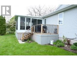Charming, well maintained Bungalow loaded with Quality, Comfort and Style in beautiful Wellington on the Lake Retirement Community on land lease. This approx. 1700 sq. ft. Welsley Model features 2 large size bedrooms and 4pc and 3pc ensuite baths and walk in closets. Carpeted, generous sized living and dining room with lots of bright light. Inviting eat in kitchen, appliances included, new bright ceiling light and pot lights, lots of cupboards, storage and a separate pantry cupboard. A comfortable den with free standing gas stove, newer patio doors leading to a lovely 3 season 14'x12' sun-room that opens onto a new back deck. Inside access to the single car garage with newer insulated garage door, motor and remotes and access to 5 foot crawl space basement. High Efficiency Furnace 14 yrs, Shingles 15 yrs, Air Conditioner 2 yrs and a 3 Season Sun-Room 3 yrs. Lots of lovely mature trees, flower gardens and a great view of a vacant field and neighbors manicured gardens. Quiet street with great neighbors. Enjoy living in this friendly, adult lifestyle community with activities at the recreation center, library, gym, billiard room, shuffleboard, in-ground heated pool, tennis/pickle ball court, lawn bowling & woodworking shop. Walking distance to the Millennium Trail, golf course, medical center, LCBO, and village/shops, restaurants, bank, pharmacy, grocery and hardware store. Close to beaches, wineries, arena, parks and all that beautiful Prince Edward County offers. ** This is a linked property.** (id:62300)