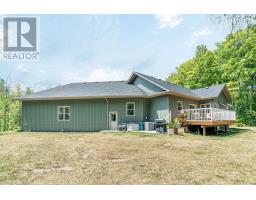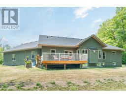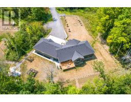 Custom-built bungalow on a stunning 1.6-acre lot in Stirling, offering over 2000 sq ft of living space on the main floor. The thoughtful layout includes a welcoming foyer, a laundry room/mud room with walkout to the oversized 3-car garage, a 2-piece bath, and an open-concept kitchen and dining area with quartz countertops, wet bar, and a seamless flow into the living room with gas fireplace. There's also a den, perfect for a home office, and a spacious primary suite with a walk-in closet and a 4-piece ensuite with double sinks and a glass shower. Two additional bedrooms feature double closets with built-in shelving and another 4-piece bathroom complete the main floor. The walkout basement is partially finished, adding a large rec room, family room with electric fireplace, 3-piece bath, cold room, and utility space. Outside, enjoy a long private driveway, large deck for entertaining, and peaceful surroundings close to town. Bell Fibe Internet is available (id:62300)