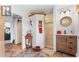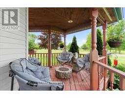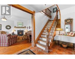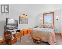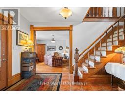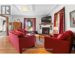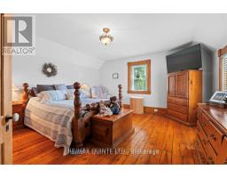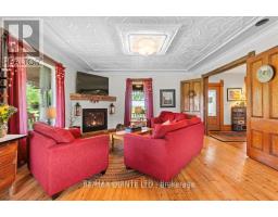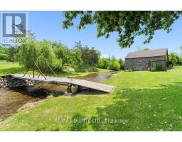 Nestled in a serene historical hamlet of Prince Edward County, this magnificent two-storey country home sits on a picturesque 2.6 acre parcel, featuring Smith's Creek gently meandering through the property behind a beautifully restored multi-level Dutch barn. Cross the creek via a quaint bridge to discover a spacious garden area - perfect for quiet enjoyment or outdoor gatherings. Meticulous care has been taken to preserve the original character of this century home. The main floor welcomes you with grand 8-foot double library doors leading to both the formal living room and the cozy family room. Each space is enhanced by original pine flooring, elegant trim, soaring ceilings, and the inviting glow of propane fireplaces. The living room also boasts an intricately designed tin ceiling, adding a touch of period charm. The newly installed kitchen (2022) was thoughtfully crafted to harmonize with the homes historic aesthetic. It offers abundant cabinetry, a central island, and opens into the bright dining area, which leads to a large deck overlooking the grounds. This deck connects seamlessly with the inviting wraparound covered porch - ideal for enjoying peaceful country views. Upstairs, the second level features four comfortable bedrooms, a spacious 4-piece bathroom, and a large walk-in storage closet. Original hardwood floors and woodwork continue throughout, preserving the timeless warmth and character of the home. The impressive multi-level barn, dating back to the late 1800's has undergone significant structural improvements, including foundation reinforcement and interior refinishing with rustic pine planks. Currently used for dry storage, its versatile design and unique atmosphere make it a perfect venue for festive events or creative ventures. Surrounded by farmland and forest teeming with local wildlife and bird species, this one-of-a-kind property offers a rare opportunity to own a piece of County heritage, with all the tranquility and beauty of rural living. (id:62300)