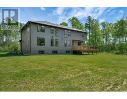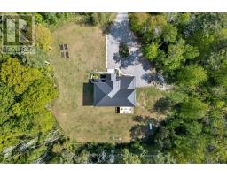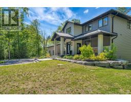 Impressive, private and beautifully located, this custom built (2022) 4 bed 2.5 bath, stunningly laid out family home, is located on a lush 2.9 acre lot in Carrying Place, Prince Edward County. Revealing itself peacefully at the end of a tree lined driveway, this sleek, yet welcoming family home strikes an impressive note that carries through inside to the vast and stylish two storey, open concept living space. Eye catching fireplace,flanked by floor to ceiling windows, anchors the open two storey living room, and leads into the large dining area and show stopping kitchen.Enormous seated island is the centre of the kitchen, with uniquely rich natural stone countertops, built-in wine fridge, pot drawers and front facing cupboards, this island is the true gathering place of this home. Plenty of custom cabinetry, stainless steel appliances and pantry cupboard, plus a sink window overlooking the covered front porch, this kitchen will check any home chefs wish list. Well laid-out to include a dedicated home office, separate storage area and access to the garage, plus a conveniently located half bath. Open to the living room below, the upstairs is beautifully laid out to include a spacious primary bedroom with walk-in closet and lovely 4pc ensuite bath with soaker tub. 3additional bedrooms are serviced by a well-finished 4pc bath. Open loft area is perfect for a cosy family room or playroom. Convenient laundry area completes the upper level. Enjoy this rare, low-maintenance treed-lined lot from the sun drenched back deck, with an ideal spot for a sunny backyard pool. Extensive front yard landscaping and serene front porch with treed views make for gorgeous turn-key outdoor living. Further complete this stunning property by finishing the roughed-in lower level and adding a detached shop to the wide side-yard off the garage.Beautifully located, thoughtfully designed and perfectly private this home is sure to impress, and make your family Feel At Home in PEC. (id:62300)