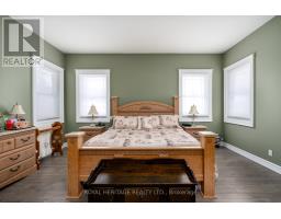 Welcome to this sophisticated custom-built residence in Prince Edward County, offering over 5,000 square feet of refined living space that masterfully combines luxury, durability, and thoughtful architectural design. This five-bedroom, four-bathroom bungaloft greets you with an elegant arrival sequence, featuring an oversized circular driveway and striking Century stone and brick finishes and SNOC exterior lighting. Inside, the home unfolds into expansive, principal rooms filled with natural light, defined by an open-concept, rich hardwood, and Italian porcelain flooring. The chef's eat-in kitchen serves as the heart of the home, appointed with custom cabinetry and Cambria quartz countertops, offering a seamless flow to a formal dining room and a sprawling TREX composite deck perfect for garden-view entertaining. The main floor is designed for modern convenience, featuring a dedicated home office, a spacious laundry suite, and a timeless wood-and-stainless steel staircase. Upstairs, a versatile loft offers a private retreat for guests or additional living space. The lower level extends the home's utility with two bedrooms, a three-piece bath, a family media room, a hobby space, and a specialized cold storage room. Built with a commitment to efficiency, the residence utilizes a custom geothermal heating and cooling system for consistent climate control and lower operating costs. Premium interior details include a Broan central vacuum, keyless entry, security system with utility monitoring and upgraded hardware and fixtures throughout. Outside, the property is a low-mntc oasis with manicured lawns and a built-in irrigation system. Complete with a finished triple-car garage, a secondary driveway & shed. Home is perfectly suited for multigenerational families & entertainers alike. Located just minutes from Highway 401, you enjoy peaceful rural living with effortless access to Trenton, Belleville, & the vibrant cultural County with Wineries, Golfing, Boating & Shopping. (id:62300)