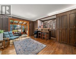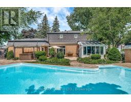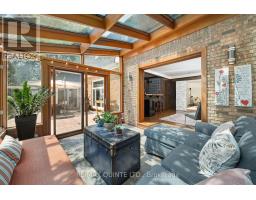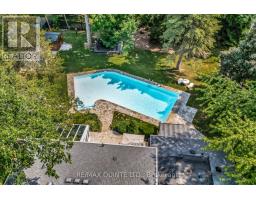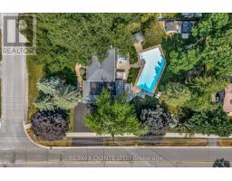 A rare opportunity to own one of Belleville's most impressive executive properties. Situated on approximately half an acre on a triple lot in the East end, this stunning two-storey home offers over 3,700 sq. ft. of living space, plus a two-car garage, a separate pool house with its own two-piece bathroom, and a backyard oasis unlike anything else in the city. The main floor has been thoughtfully updated while maintaining its timeless character. At the heart of the home is a stylish kitchen with granite countertops, a large centre island with bar seating, stainless steel appliances, ample storage, and views of the pool and patio. The oversized dining room easily accommodates large gatherings, while the formal living room and the stylish lounge, featuring a wood-burning fireplace and wet bar, provide versatile, luxurious, and cozy entertaining areas. Off the lounge, a showstopping 4-season solarium with floor-to-ceiling glass creates a perfect transition between indoors and out. The main level also features a bright dedicated office, a large foyer, a dedicated laundry closet, a powder room, and direct access to the oversized two-car garage. Upstairs, the massive primary suite spans over 400 sq. ft. and includes a walk-in closet, two additional closets, and a six-piece ensuite bathroom. Two more generous bedrooms and an updated five-piece main bath complete the upper level. The lower level offers over 700 sq. ft. of open rec room space, a modern three-piece bathroom, and a huge unfinished storage area. Outside, enjoy mature trees, a disc golf basket to practice your throw, a beautiful pool, a hot tub, landscaped gardens, a natural gas BBQ hookup, and an interlock patio. There is also a separate gazebo with a large dining table, accommodating more guests and offering family-style outdoor dining. This home was made for entertaining. A truly exceptional property close to schools and amenities. You won't find anything else like it. (id:62300)