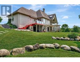 Tucked into one of Brightons most desirable areas, this custom-built executive home spans a rare double lot and is designed for living large, with every detail thoughtfully considered. Totalling over 5000 sqft of finished living space with 4 beds, 4 baths, it is truly one of a kind! Step onto the interlock walkway and into a grand foyer that opens into a stunning great room, where soaring ceilings, gas fireplace w/ dimmer light, hardwood flooring, and cherry built-in entertainment wall set the tone for the homes elegant flow. The main level offers seamless transitions between the formal living room, dining room complete with walkout to the elevated, covered deck overlooking protected land and an executive maple & cherry kitchen outfitted w/ granite counters, centre island, gas cooktop, double wall ovens, walk-in pantry & breakfast nook w/ second walkout to the uncovered, upper deck w/ retractable awning. The serene primary suite featuring a water closet, glass walk-in shower, whirlpool tub, custom double-sink vanity & spacious walk-in closet has you relaxing in luxury. A main-floor office w/ extensive built-ins overlooks professionally landscaped grounds w/ 7 zone, in-ground sprinkler system for easy maintenance, while the main floor laundry room is what dreams are made of. A wide staircase leads to the lower level which is fully finished w/ walkout! Expanding your living space and lending to a in-law suite or any hobby, this level features a kitchenette, 3 bedrooms, 2pc powder room & 4pc bath, cozy 4-season sunroom currently used as a second office, plus a cedar closet, cold cellar, & a walkout workshop built under the garage. Heated floors run throughout the entire lower level, as well as inside the oversized 2-car garage w/ inside entry. Built with quality & care, the features are extensive. Just minutes from Brightons amenities, trails, and the shores of Presquile Bay, this is a home where thoughtful design and natural beauty meet- ready for your next chapter. (id:62300)
