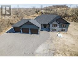 REDUCED $89,000, Inventory home complete and available for a quick closing. Modern 6 month old custom raised bungalow from Duvanco Homes . This home sits on almost 2 acres just minutes from the city. Modern and stylish design finished in high end premium finishes. Open concept living space featuring vaulted ceiling living room and includes gas fireplace finished with custom shiplap surround. Full custom built kitchen cabinets reach the ceiling finished with tasteful crown molding and light valance. Island containing built in wine fridge and seating for up to 4 people. Quartz counter tops with soft close drawers, all Frigidaire Professional stainless steel appliances with 5 burner gas stove. Carpet free main level with 5" wide plank engineered distressed hardwood flooring from end to end including bedrooms. Porcelain tile flooring in bathrooms and main floor laundry area. 5 piece ensuite contains a unique stand alone soaker tub, double vanity and 2 person tile shower with duel shower heads in a full glass surround. 3 car attached garage with stairs leading to main floor landing and second private entrance directly into the basement. 14 x 12 ft full screened covered deck and a 12 x 24 ft uncovered deck that provides complete privacy and a great view. Remaining Tarion warranty applies and is included. (id:62300)