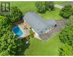 Welcome to this beautifully updated bungalow nestled on 1.46 acres at the edge of town where modern comfort meets relaxed country living.This move-in ready home is bursting with upgrades and features that make it perfect for families, professionals, and anyone who craves space and style. Inside, you'll nd three spacious bedrooms and two and a half bathrooms, including a renovated primary en-suite with generous storage. The dedicated once or den offers a bright space to work from home, while the upgraded main bathroom and powder room add style and function. The main-floor laundry adds convenience, and the cozy family room with a gas replace is perfect for movie nights and quiet evenings. Gorgeous hardwood flooring runs throughout the main level, tying it all together with warmth and character.The heart of the home is the fully renovated kitchen,complete with modern cabinetry, granite countertops, a center island, and a new sink and faucet. It comes equipped with brand new stainless steel appliances, including a fridge, built-in oven, microwave, countertop stove, and dishwasher. The kitchen opens to a sunny breakfast nook with views of the backyard and connects to a formal dining room, ideal for entertaining. Sliding patio doors lead to a covered deck and fenced-in saltwater pool area your own private summer retreat with a direct gas line for the BBQ. Downstairs, the fully finished basement adds even more living space with a pellet stove for extra warmth, a guest room or office, a fitness or hobby area, and plenty of storage. Outside, the property continues to impress. Beyond the pool area, the expansive yard features a re pit and two sheds for added functionality. A metal roof was installed in 2014 and comes with a 50 year transferable warranty, offering long-term peace of mind.The solar panels keeps your hydro costs to a bare minimum and the generator is a great feature for backup power. (id:62300)