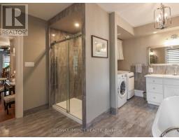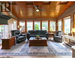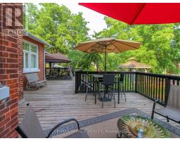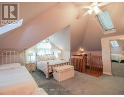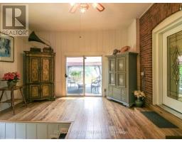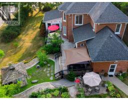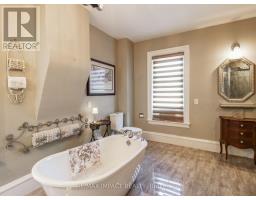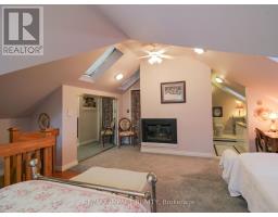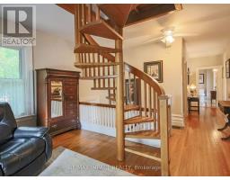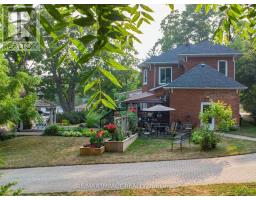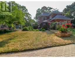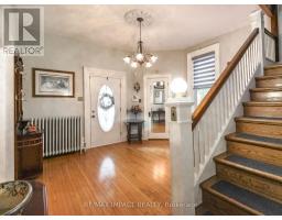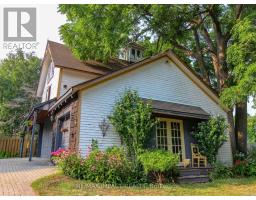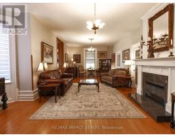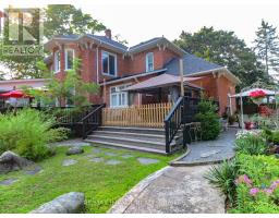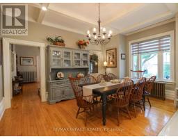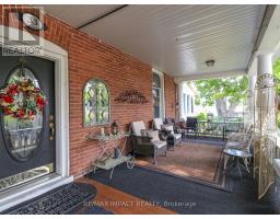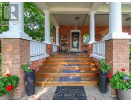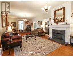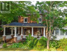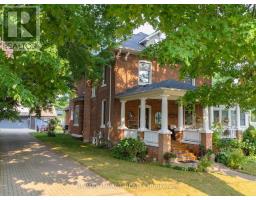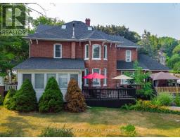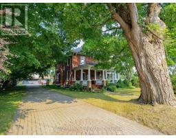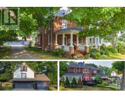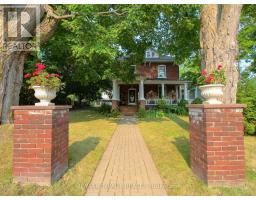 Welcome to this magnificent 2-1/2 storey brick CIRCA 1870's Century home, located in the downtown section of the Village of Colborne. This corner 0.63 acre lot with interlocking brick driveway running through the property provides access/egress to both Division and Creek Streets. The home's grandeur is one of the largest in the village, accentuated by a huge front veranda with white doric columns and ornate brackets under the wide eaves. Designed as an Italianate vernacular style, this Victorian home boasts an array of architectural details, including some window stained glass inserts, huge baseboards, extensive wood trim and hardwood flooring, glass door knobs, almost 10 ft main floor ceilings, plus a welcoming front foyer featuring a lit bannister and convenient powder room. The updated family kitchen showcases large porcelain tiles, a stylish white backsplash, stainless steel appliances and white cabinetry with granite counters. The island includes a breakfast bar and the waffle white ceiling extends through to the windowed eating area. Off the kitchen, there is a convenient office/den, plus an expansive combined formal living/dining room with gas fireplace, hardwood floors and bay window area. Relax in the sunroom, complete with a cozy gas fireplace, abundant windows, stained wood ceiling, or step outside to the south deck with gazebo. The rear mudroom also features a gas fireplace with board-and-batten finished walls, plus basement access. Venture upstairs to the 2nd level with 3 well-appointed bedrooms, including a primary suite with a bay window and double mirrored closet doors. The upper level also features a large combination bathroom/laundry area with porcelain floor tiles, large walk-in shower, standalone soaker tub plus laundry facilities with front-load appliances. A spiral oak staircase leads to the 3rd level with a 4th bedroom, gas linear fireplace, round Palladian window dormer, skylights, plus 3-pc ensuite, mirrored closet and generous storage. (id:62300)