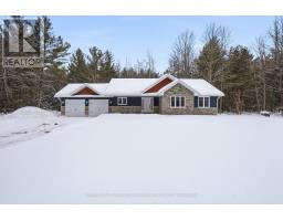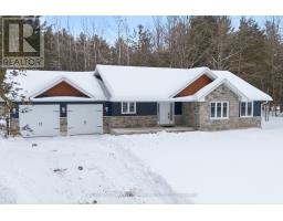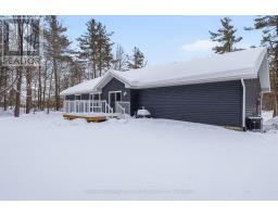 Here's the country home you've been waiting for! Tucked among the trees on a beautiful 2-acre lot, this custom-built ranch bungalow is move-in ready with 3 immaculate bedrooms and 2 bathrooms. A welcoming covered front porch opens to a bright foyer and an open-concept main living area with cathedral ceilings and views of the private backyard. The spacious dining area has sliding doors leading to a large deck, perfect for entertaining. The gorgeous kitchen features a center island, large pantry, and granite countertops. The main floor also includes a laundry/mudroom with direct access to the attached double garage. The primary suite offers a walk-in closet and a 3-piece ensuite with a tiled walk-in shower. Two additional generously sized bedrooms and a main 4-piece bath complete the level. The lower level offers endless possibilities-create a rec room, extra bedrooms, or even add a third bathroom with the existing rough-in. The level lot is lined with trees for ultimate privacy, and the location is just minutes from the villages of Madoc and Tweed for amenities. With gas heating, central air, and a standby automatic generator, this 2021-built home is a charming gem priced to sell quickly! (id:62300)