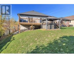 Built in 2019, this all-brick 4 bed, 3 bath home offers a perfect blend of newer home comforts and low-maintenance living. Set in the ideally located and sought after Tackaberry Ridge subdivision, it's the ideal home for families or those looking to retire beautifully in a welcoming, lock-it-and-go neighbourhood. Step inside to a bright and airy main floor with 9' ceilings and an open-concept layout designed for easy living and entertaining. The inviting living room features a cozy gas fireplace and bright patio door that fills the space with natural light. The custom kitchen impresses with stainless steel appliances, hard-surface countertops, a seated island, and a deep walk-in pantry, while the adjacent dining area makes family entertaining easy. The spacious primary suite is a private retreat, complete with a beautifully featured ensuite with built-in cabinetry, a glass-and-tile shower, and a large walk-in closet. A patio door leads directly to a deck and private hot tub area, your own personal escape. A second main-floor bedroom is perfect for a nursery, office, or den, while a 4-piece bath and convenient laundry room with garage access add to the thoughtful layout. The lower level offers bright and inviting additional living space and is perfectly laid out for kids. Two bright bedrooms with on-grade windows share a pass-through walk-in closet, and a great full bath with double sinks and plenty of storage, making busy mornings a breeze. Outside, the covered front porch overlooks peaceful green space, while the generous backyard features a large elevated deck, gas BBQ hookup, pergola, and hot tub area for year-round enjoyment. The deep single garage and double-wide driveway add great utility. Located steps from parks, schools, and the recreation centre, this move-in-ready home blends comfort, quality, location and community in one perfect package. (id:62300)