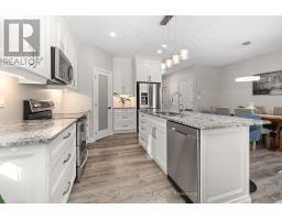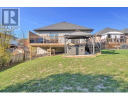 Built in 2019, this all-brick 4 bed, 3 bath home offers a perfect blend of newer home comforts and low-maintenance living. Set in the ideally located and sought after Tackaberry Ridge subdivision, it's the ideal home for families or those looking to retire beautifully in a welcoming, lock it-and-go neighbourhood. Step inside to a bright and airy main floor with 9' ceilings and an open-concept layout designed for easy living and entertaining. The inviting living room features a cozy gas fireplace and bright patio door that fills the space with natural light. The custom kitchen impresses with stainless steel appliances, hard-surface countertops, a seated island, and a deep walk-in pantry, while the adjacent dining area makes family entertaining easy. The spacious primary suite is a private retreat, complete with a beautifully featured ensuite with built-in cabinetry, a glass-and-tile shower, and a large walk-in closet. A patio door leads directly to a deck and private hot tub area, your own personal escape. A second main-floor bedroom is perfect for a nursery, office, or den, while a 4-piece bath and convenient laundry room with garage access add to the thoughtful layout. The lower level offers bright and inviting additional living space and is perfectly laid out for kids. Two bright bedrooms with on-grade windows share a pass-through walk-in closet, and a great full bath with double sinks and plenty of storage, making busy mornings a breeze. Outside, the covered front porch overlooks peaceful green space, while the generous backyard features a large elevated deck, gas BBQ hookup, pergola, and hot tub area for year-round enjoyment. The deep single garage and double-wide driveway add great utility. Located steps from parks, schools, and the recreation centre, this move-in-ready home blends comfort, quality, location and community in one perfect package. (id:62300)