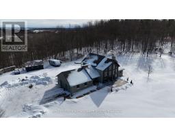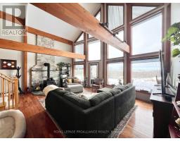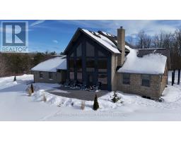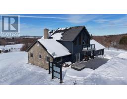 The views steal the show perched high above the rolling countryside, offering a perspective you won't find twice. Set on 12.25 acres just 15 min north of Belleville, this 5 bed, 3 bath home has over 3,350 sqft of living space; with a walk-up basement it is perfectly suited for multi-generational living. Strategically positioned between Toronto and Ottawa, this is more than a home-it's a vantage point. On a clear day, the elevated northwesterly views stretch as far as the Marmora Mine, offering sunsets that must be experienced in person to be believed. A tree lined paved laneway leads to the home perched proudly atop the hill. Exceptional curb appeal is highlighted by a blend of stone and T&G wood siding, armour stone borders, mature perennial gardens, and composite decking. The attached heated two car garage offers interior access to the mudroom and separate stairs to the basement. A detached 14' x 24' garage with concrete floor provides excellent space for toys or workshop. Inside, exposed beams, soaring cathedral ceilings, and rich cherry hardwood floors create warmth and character. The living room showcases a dramatic wall of windows framing some of the best views in Hastings County, complemented by a wood burning stove set against locally sourced stone. The spacious kitchen with island and abundant storage flows into the dining area with walkout to the rear deck. Two bedrooms, a 4-piece bath, and a mudroom with laundry complete the main floor. Upstairs, the loft style primary retreat spans the entire level, featuring a walk-in closet, 4-piece ensuite, and private deck. The walk-up basement offers two additional bedrooms, a 3-piece bath, and two expansive rec-rooms. A versatile boiler system supports in floor basement heating, forced air throughout, garage heat, and the option to extend to the detached shop. The acreage offers a blend of open clearings, a pond tucked into the hardwood bush, mature towering pines perfect for trails or harvesting your own firewood. (id:62300)