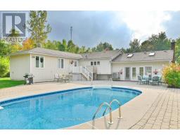 Down a quiet dead-end road, tucked into a one acre lot among the trees, sits this lovely bungalow that feels like a retreat every single day. This 1,900 sq. ft. bungalow is designed or gathering, laughing, and living well. Step inside and you're greeted with wide open spaces the great room with its cozy propane fireplace, a kitchen with more drawers and cabinets than you'll know what to do with, and plenty of room for everyone to mingle. Two bedrooms upstairs (with space to easily add a third!) plus a fully finished lower level mean there is room for family, guests, hobbies, or whatever life throws your way. When its time to unwind, head outside. The in-ground pool with its newer liner and pump (2024) sparkles in the sunshine, framed by the privacy of mature trees. Its your very own backyard escape where summer memories are made. A 23' x 25' detached garage offers space for cars, lawn mowers, and outdoor toys. Thoughtful renovations over the years and efficient heating with an electric heat pump (2025) plus propane, have given this home the modern comforts to match it's charm. This is more than a house it's an entertainers dream, a peaceful retreat, and the perfect place to call home. (id:62300)