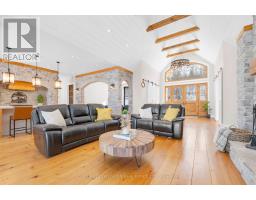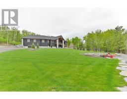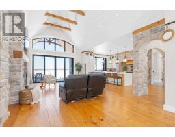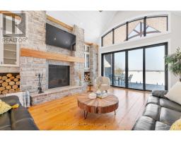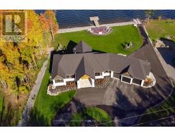Lake life at its finest! Check out this exceptional 4-bedroom, 5-bath waterfront home located on the highly sought-after south shore of Moira Lake, and offering over 4,800 sq. ft. of beautifully finished living space with unobstructed lake views. Located in an area of newer customs homes and offers immaculate landscaping, a private boat launch, and hard-bottom shoreline make this a rare and impressive offering. A paved circular driveway leads to a triple garage with epoxy floors, plus a bonus lower-level garage with access all the way down to the water. Smart home technology throughout both levels provides modern convenience. A stone-pillared entrance welcomes you into a vaulted foyer that opens to the great room, where breathtaking lake views take center stage. Wide-plank flooring throughout adds timeless sophistication, while a custom stone wood-burning fireplace anchors the open-concept kitchen and living area, featuring matching stonework and a large center island-ideal for entertaining. A spacious formal dining room with an office area completes the main living space. The main level includes two bedrooms, highlighted by a luxurious primary suite with private deck access and a spa-like 5-piece ensuite with soaker tub and walk-in shower. The fully finished walkout lower level offers a large rec room with propane fireplace, bar rough-in, games room suitable for a pool table or golf simulator, theatre room, 10'x16' cold room, two additional bedrooms, two baths, and access to a finished patio overlooking the waterfront. Professionally landscaped grounds include an irrigation system, stamped concrete firepit area at the water's edge with stone island and bar fridge, an aluminum docking system with depth to dive in for a dip to cool off, finished with armor stone break wall and erosion-proof river stone. Enjoy excellent boating and fishing, with close proximity to the Heritage Trail for ATV and snowmobile use. No expense spared. Approx. 2 hours to Toronto or Ottawa. (id:62300)