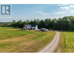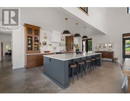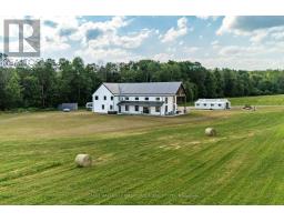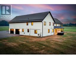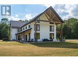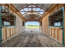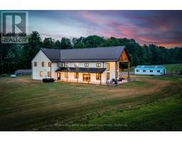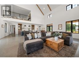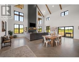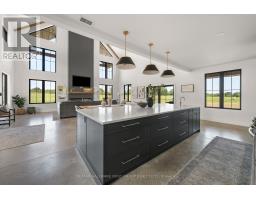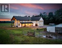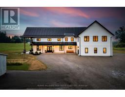 A rare opportunity where timeless elegance meets luxurious country living on 63.16 acres! Whether you're searching for a hobby-farm, hay farm or a chance to unwind in luxury, this 2023 custom-built, architectural masterpiece offers over 5,300 sqft of magazine worthy living space. In 5 beds, 4 baths and upper level, in-law suite potential you will appreciate the bold design coupled with modern comfort. Soaring 26ft ceilings & beam detail in the living room welcome you to the open concept living space where heated, polished concrete floors run throughout. The custom kitchen overlooks both the dining area and living room, offers stunning views of the landscape and features quartz counters & back splash, premium pot drawers, glass cabinetry, pot filler, full appliance package & 14ft centre island. Tucked behind is the secondary prep-kitchen which dreams are made of! Catering to a large family, you will appreciate the expansive laundry room, mud room w/ inside entry to the 2+ car garage w/ drive through door, heated flooring & hot/cold water service, as well as the spacious primary suite complete with a walkout to the stamped concrete, covered porch, a 5pc. ensuite which includes a soaker tub & glass walk-in shower as well as a walk-in closet featuring natural light. On the upper level, a massive bonus room offers versatile space for a theatre, home gym, private retreat, or in-law suite (2nd stairs can be added & septic is rated for it) in addition to the 3 bedrooms and 2 full bathrooms on this level! As an added bonus, the 7-stall horse barn is perfect for equestrian lovers or hobby farmers. Whether you're enjoying panoramic views and sunsets in peaceful solitude or hosting guests in open, light-filled spaces, this is truly one-of-a-kind!! Located just minutes from golf courses, 401 access, and essential amenities, it's more than a home, it's a lifestyle unlike any other. Extras: hydrounic heating system, constant pressure well pump & electrical r/i for generator. (id:62300)