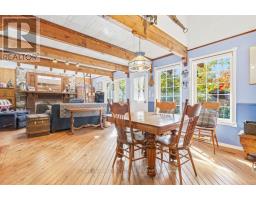 ONE OF A KIND CUSTOM ARCHITECTURAL DESIGNED HOME ON THE BANKS OF THE MAJESTIC BLACK RIVER! A truly unique gem that must be seen to be appreciated. Full of Character and Charm throughout features custom millwork, timber beams, cathedral wood ceiling designs, stain glass window pieces and custom fireplaces mantle and more! This stunning 3,500 sq foot home is perfect for families that need space, features 4 Bedrooms & 5 Bathrooms. Original home built in 1984 with rustic charm and large addition added in 2001, intricately crafted masterpiece designed by the owners. Includes options for separate living quarters & space for income or in-laws. Beautiful spacious formal dining room with garden doors leading to deck overlooking the water. Primary Suite on main level features crafted wood beams, custom octagon shaped space, lots of natural light & walkout to deck, large walk in closet plus 5 PC bathroom. Grand staircase with stunning stain glass window & custom cathedral wood ceiling design leads to upper level family room or large studio space with lots of natural light. Main level area with cozy propane fireplace with custom mantel & wood beams, open to eat-in kitchen area filled with natural light from the skylights. Circular Staircase to upper level which provides 2 bedrooms & full bath, 1 bedroom with it's own balcony. Main level laundry room includes new washer & dryer. Extra workshop area for storage has two separate entrances includes mudroom area & bathroom. Enjoy the peace and serenity of the calming sound of the river flowing from multiple decks and balconies that offer a perfect spot for relaxing & enjoying your morning coffee. Cozy screened in gazebo to unwind in nature & listen to the flowing rapids! This well maintained home is move in ready, metal roof, new septic in 2021. Looking for a piece of paradise, large family home, getaway/sanctuary or air bnb, this property is a must see! Located just off Highway 7, Close to Tweed for all amenities. Priced to sell! (id:62300)