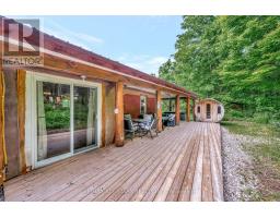 Welcome to this stunning custom-built home (2004), set on approximately 1.5 peaceful acres just north of Madoc, where privacy, nature, and comfort come together beautifully. Thoughtfully positioned and surrounded by mature trees and scenic trails, this property delivers a true "retreat" feel while still being conveniently located just about 2.5 hours from Toronto and 45 minutes to Belleville-ideal for weekend escapes or year-round living. Offering approximately 1,500 square feet of bright, open-concept space, the main floor is designed for both everyday living and effortless entertaining. Soaring ceilings and large windows flood the home with natural light, highlighting the generous living and dining areas that flow seamlessly into the well-appointed kitchen. Whether you're hosting friends, enjoying a cozy night in, or simply taking in the views, the layout feels spacious, welcoming, and functional. The primary suite is a true sanctuary, featuring a walk-in closet and a charming clawfoot soaker tub that invites you to unwind at the end of the day. A comfortable guest bedroom and a second bathroom complete this 2-bedroom, 2-bath floorplan, offering flexibility for family, guests, or work-from home needs. Outside, the property really shines for those who love outdoor living. With ample yard space, surrounding trails, and room to roam, it's perfect for campfires, gardening, star-gazing, or simply enjoying quiet mornings with coffee on the deck. Whether you envision this as your full-time home, a recreational getaway, or a future short-term rental/retreat, the potential here is truly impressive-this is outdoor living extraordinaire. (id:62300)