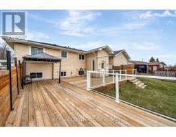 This beautifully updated raised bungalow sits on a rare, oversized lot in town and offers the perfect blend of space, style, and flexibility. The open-concept main floor features a stunning custom kitchen (2023) by Kenzie Dream Kitchens with solid maple, ceiling-height cabinets, quartz countertops, a large island, under-cabinet lighting, and stainless-steel appliances. Vinyl plank flooring runs throughout, and the main level includes two spacious bedrooms, including a primary with ensuite, plus an additional full bath with double sinks and a walk-in shower. The finished lower level adds incredible potential with two more bedrooms, a full bath, large rec room with gas fireplace, and a second kitchen ideal for in-laws, guests, or a rental unit with separate entrances from both the garage and backyard. Outside, enjoy a fully fenced yard with tiered decks, a hot tub, gazebo, fire pit, and space to garden. A triple garage with high-track bay and a driveway that has parking for 10+ vehicles. Conveniently located close to highway 401, shopping and more! (id:62300)